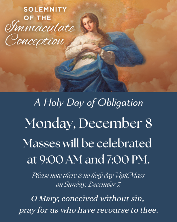 On Saturdays, Exposition of the Most Blessed Sacrament takes place following the 9:00 AM Mass.