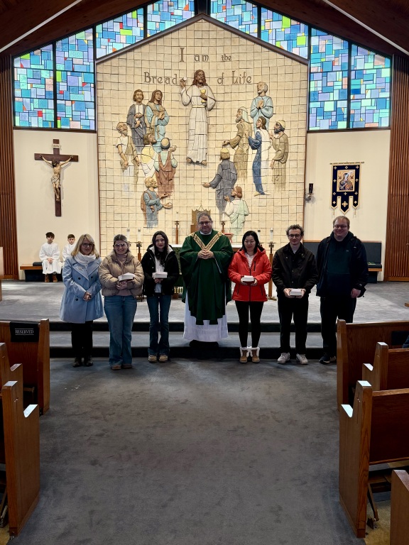 At the 10 AM Mass on Sunday, February 1, we officially welcomed those who have been inquiring about and discerning being part of the Catholic faith, as well as their sponsors. These men and women will complete their Sacraments of Initiation at the Easter Vigil and the Sunday after Easter. We continue to pray for them as they journey towards Full Communion with us in the Catholic faith.
