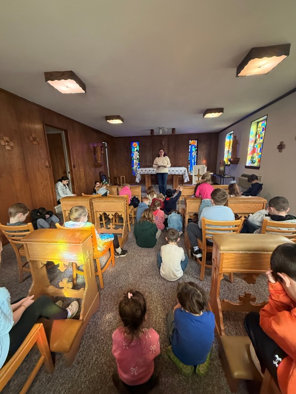The Children's Liturgy of the Word is a Liturgical Celebration for children ages 4-9. It provides the children with a celebration of the Liturgy of the Word during Mass that is geared especially for them. It consists of hearing the three Sunday readings proclaimed using a special Children's Lectionary, music, discussion, and sharing. Everything in the liturgy is adapted to their level of understanding so that the Living Word of God may be made real and present for them. The Children's Liturgy is held weekly the Sunday following Labor Day through the end of June.